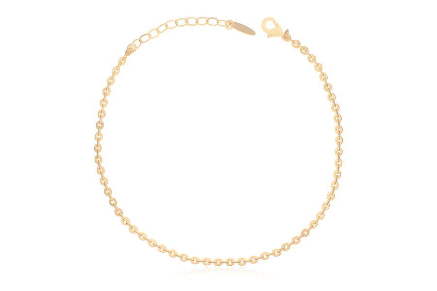 TORNOZELEIRA BANHADA EM OURO, CORRENTE ELO OVAL 2,80mm LARGURA, 23cm COMPRIMENTO, EXTENSOR 5cm E PESO 2,60g