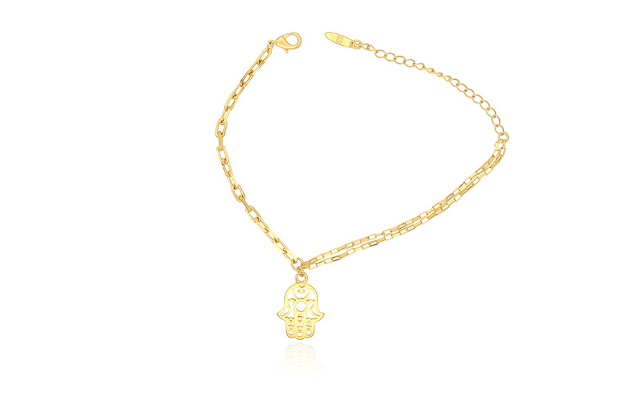 PULSEIRA BANHADA EM OURO, ELO 3,50mm LARGURA, 19cm COMPRIMENTO E BORBOLETA 10,30mm LARGURA