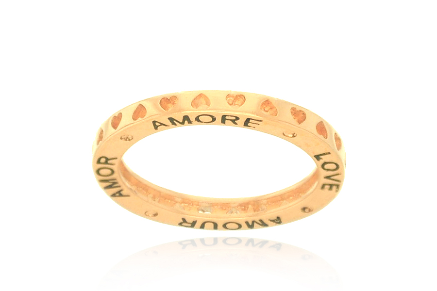 ANEL BANHADO EM OURO, CORAÇÃO 4,30mm LARGURA, COM RESINA COLORIDA