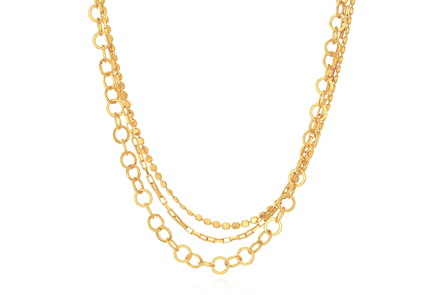 CHOKER BANHADA EM OURO, CORRENTE ELO 3,30mm ESPESSURA, 35cm COMPRIMENTO E PESO 8,10g