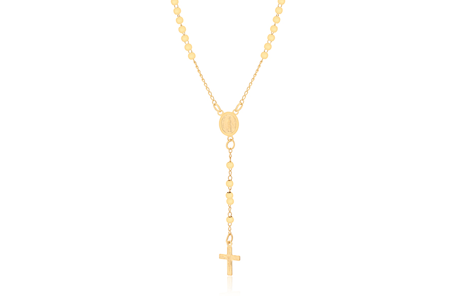 GARGANTILHA BANHADA EM OURO, NOSSA SENHORA DAS GRAÇAS, OVAL 28x23mm, 2 FLORES, ELO VENEZIANA 0,80mm, 45cm COMPRIMENTO, EXTENSOR 5cm