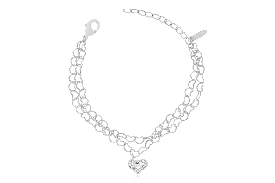 PULSEIRA BANHADA EM OURO, ELO PORTUGUÊS 3mm E 1,50mm, CORAÇÃO 7mm LARGURA, 17cm COMPRIMENTO