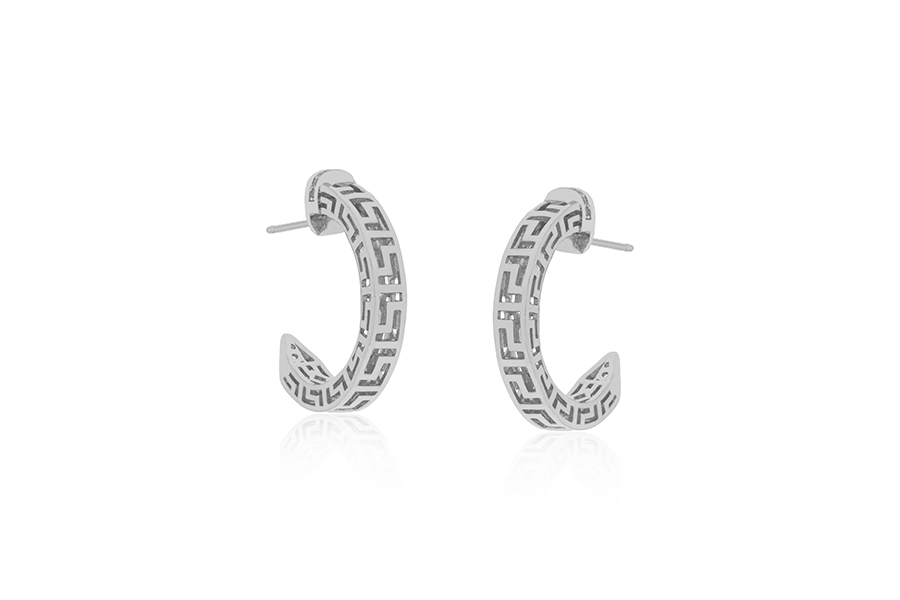 BRINCO BANHADO EM RÓDIO BRANCO, REDONDO 13,50mm DIÂMETRO, COLEÇÃO FILIGRAN