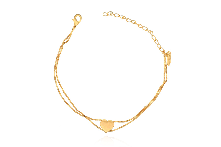 PULSEIRA BANHADA EM OURO, ELO PORTUGUÊS 3mm E 1,50mm, CORAÇÃO 7mm LARGURA, 17cm COMPRIMENTO