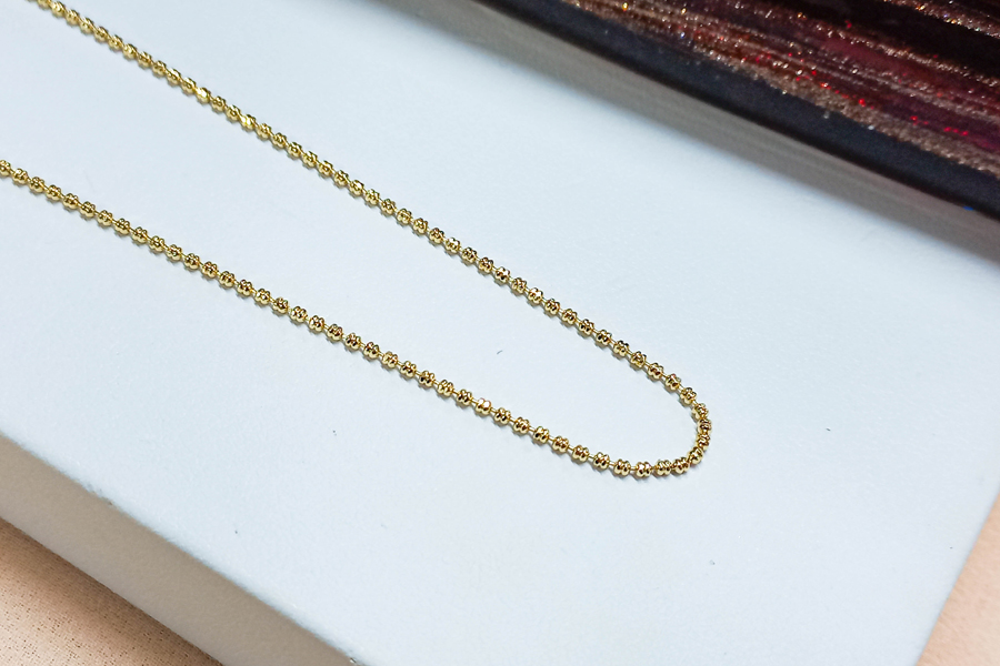 CORRENTE BANHADA EM OURO, ELO RABO DE RATO 1mm, 40cm COMPRIMENTO, EXTENSOR 5cm COMPRIMENTO E PESO 3g