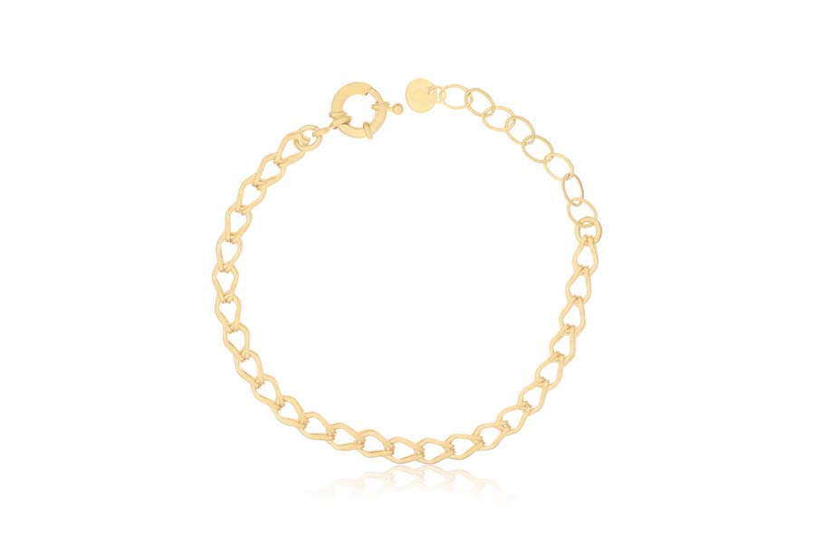 PULSEIRA BANHADA EM OURO, ELO PORTUGUÊS 3mm E 1,50mm, CORAÇÃO 7mm LARGURA, 17cm COMPRIMENTO